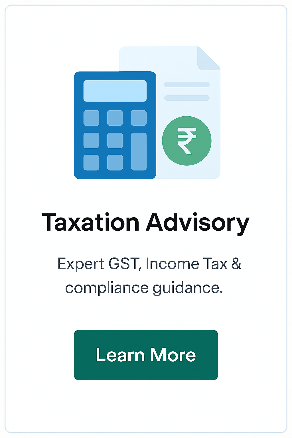 Comprehensive guidance on GST, Income Tax, and corporate compliance, helping businesses reduce risks and maximize sustainable tax savings.